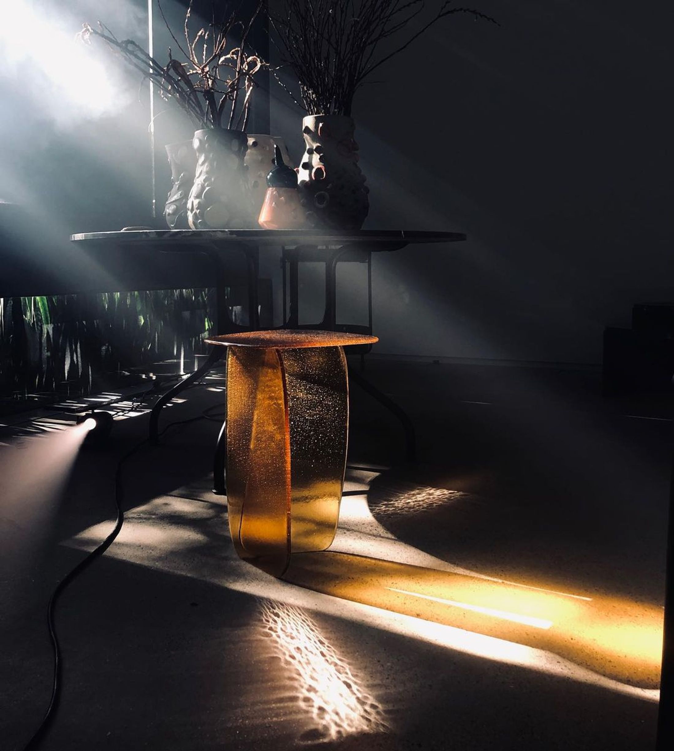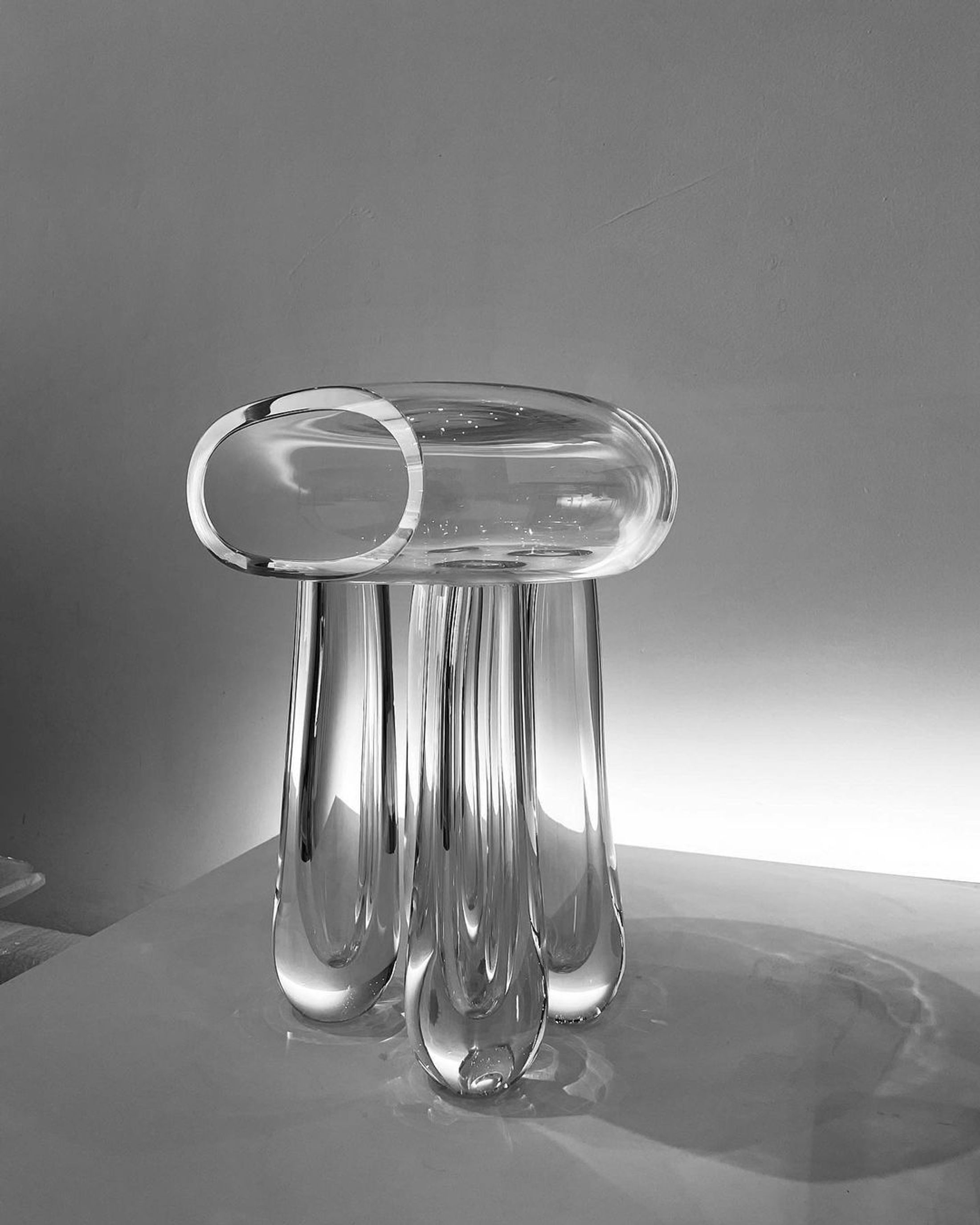 Lucas Recchia (studio CAS), born in 1992, on an island in the South of Brazil. Lucas began his career as a designer in 2018, with his first solo show for avant-garde gallery, Firma Casa in São Paulo. He quickly catches the attention of the whole country as the first Brazilian designer to develop glass techniques in furniture design. Lucas incorporates the potential of recycled glass, with ancient techniques and solar energy–an artisan with worldwide experience.